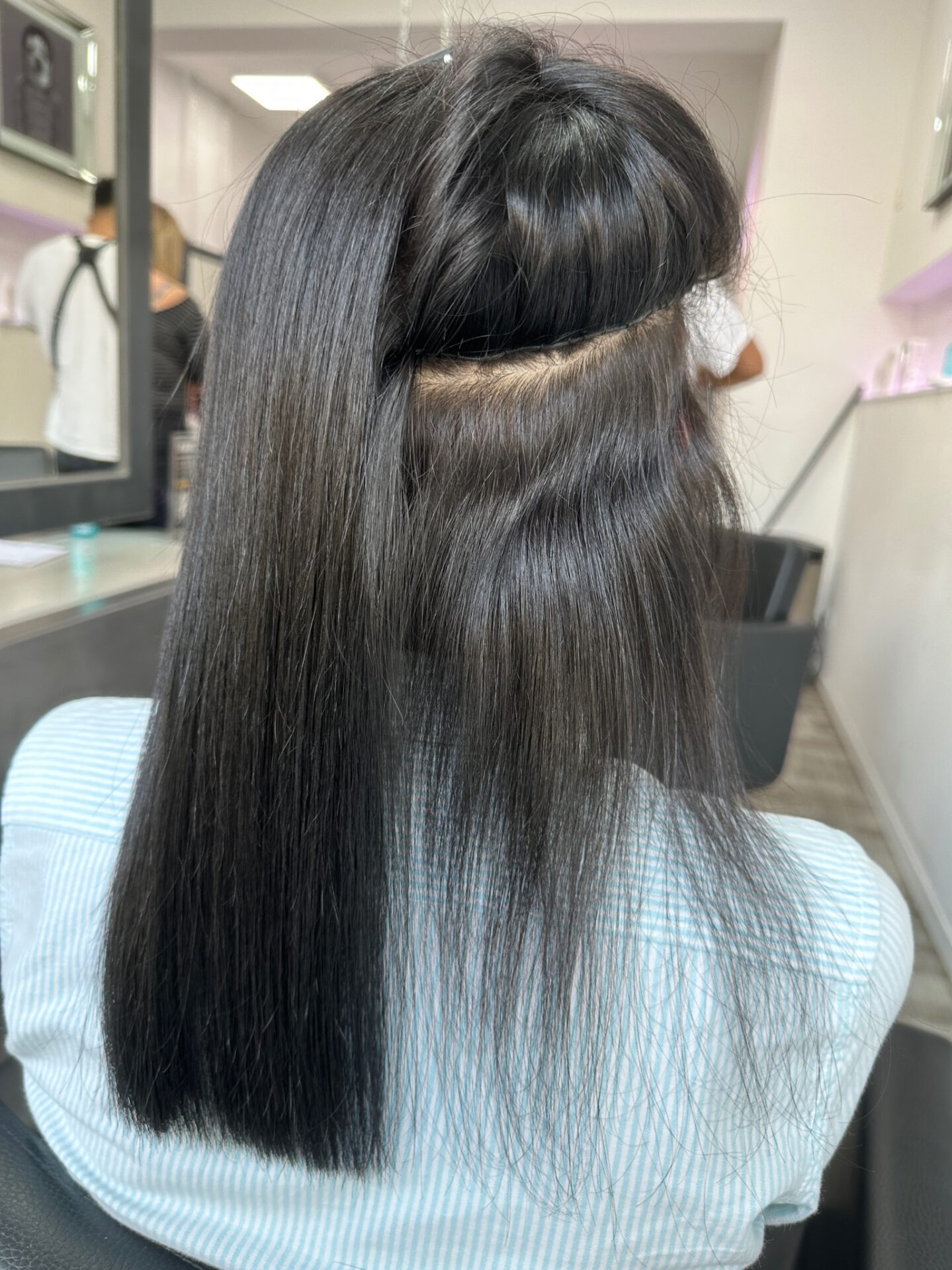 Mit Microringen oder Fäden befestigt, liegen die Tressen flach am Kopf und sind kaum spürbar.